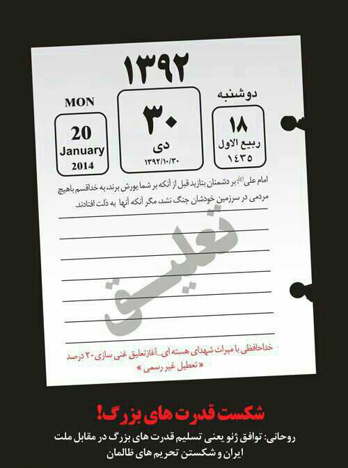 جان سلام! حال همه خوب است آنجا!؟ میشل جان چطوره؟ اینجا بچهها خبرتان را میگیرند و سلام گرمشان را میرسانند و سخت مشتاق دیدار هستند. راستی از کنگره چه خبر؟ به بچههای کنگره سلام برسان و به آنها بگو با خیال راحت تحریمهای جدید وضع کنند. آخر توافق بین